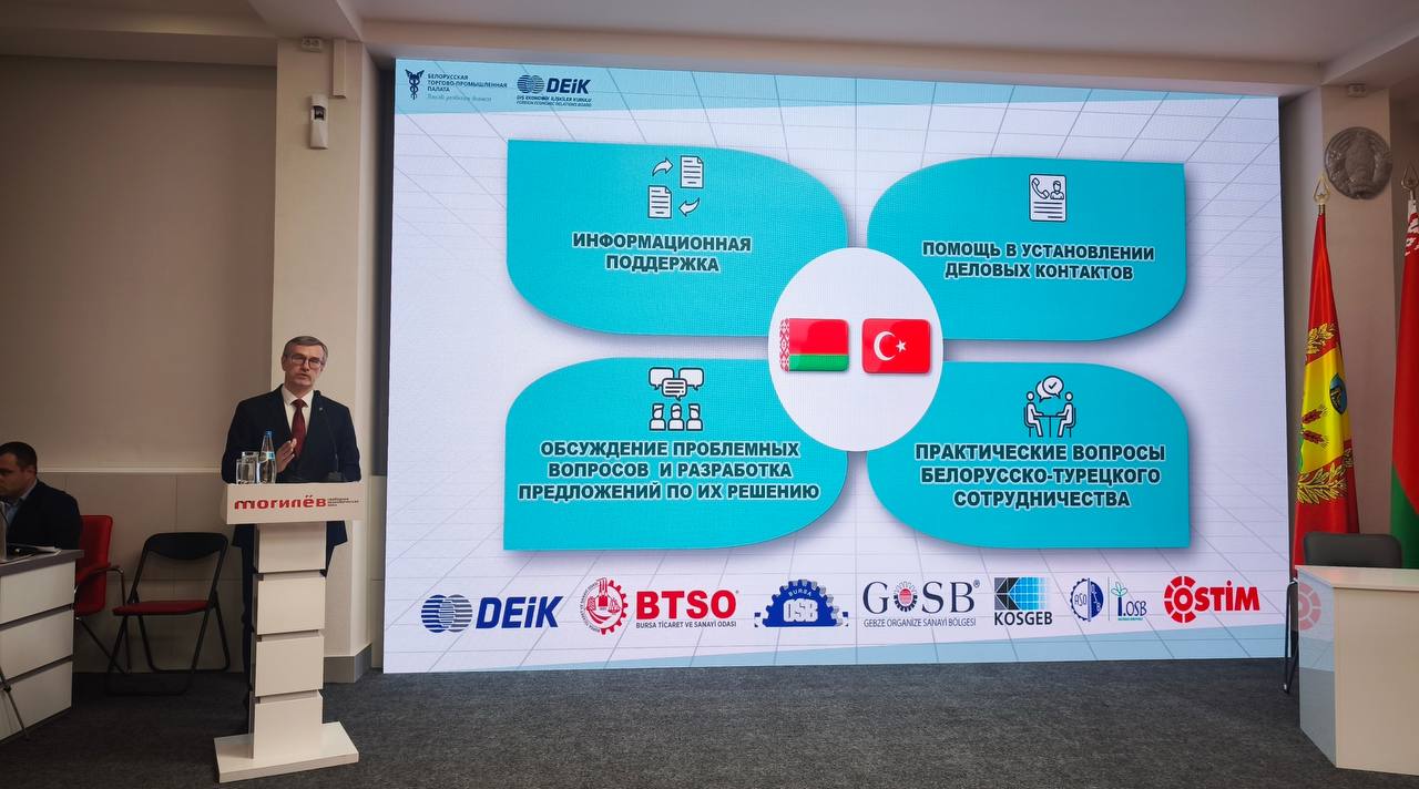Глава администрации СЭЗ «Могилев» и председатель белорусской части Белорусско-Турецкого делового совета Павел Мариненко выступил с презентацией о деятельности и бизнес-ориентированных мероприятиях Белорусско-Турецкого делового совета;заместитель председателя Белорусской торгово-промышленной палаты Виталий Вабищевич ознакомил участников семинара с юридическими нюансами осуществления внешнеэкономической деятельности с Турецкой Республикой и рассказал об услугах Белорусской торгово-промышленной палаты в сфере правовой поддержки внешнеэкономической деятельности; представители ЗАО «Банк «Решение» и ЗАО «Нео Банк Азия» поделились информацией о существующих возможностях в сфере взаиморасчетов между белорусскими и турецкими субъектами хозяйствования; начальник отдела логистики Могилевского филиала РУП «Белтаможсервис»Екатерина Чернякова выступила с презентацией на тему «Эффективные решения в сфере транспортной логистики «Беларусь-Турция/Турция-Беларусь»; Представитель Ассоциации независимых промышленников и предпринимателей Турции «MUSIAD» г-н МикаилЧалышкан анонсировал проведение масштабной международной выставки «MUSIAD Expo 2026», которая пройдет в г. Стамбуле в сентябре текущего года.