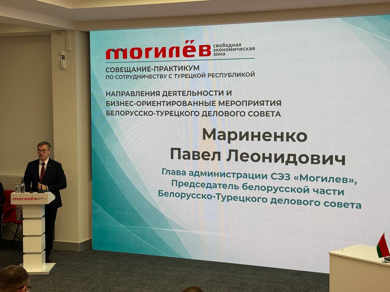 28.01.2026 в рамках Совещания с резидентами СЭЗ «Могилев» на тему: «Итоги деятельности СЭЗ «Могилев» за 2025 год, перспективы 2026 года», состоялся Семинар-практикум по сотрудничеству с Турецкой Республикой.