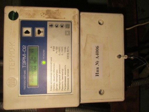 Теплосчётчик ТЭРМ-02-6 инв. № 7 А4006. Теплосчетчик ТЭРМ-02-6-1 однопоточный предназначен для измерения тепловой энергии, тепловой мощности, температуры, давления, расхода и объема теплоносителя (воды) в системах теплоснабжения (тепловые пункты жилых домов, административных и производственных знаний, ЦТП). Комплектность: Эл. блок ИП-02-1 – 1 шт. Преобразователь расхода ППР – 1 шт., Термометры ТСП – 1 пара. Монтажный комплект и термодатчиком ТДТ с гильзой. Клапан регулирующий седельный «КС». Техническая характеристика: Диапазон измерения давления 0...1,6 МПа. Количество каналов измерения расхода 1. Мощность до 10 ВА. Напряжение 230 В. Степень защиты IP 65. Диапазон измерения расхода ППР ДУ 50 мм от 0,24 м3/ч до 60,0 м3/ч.