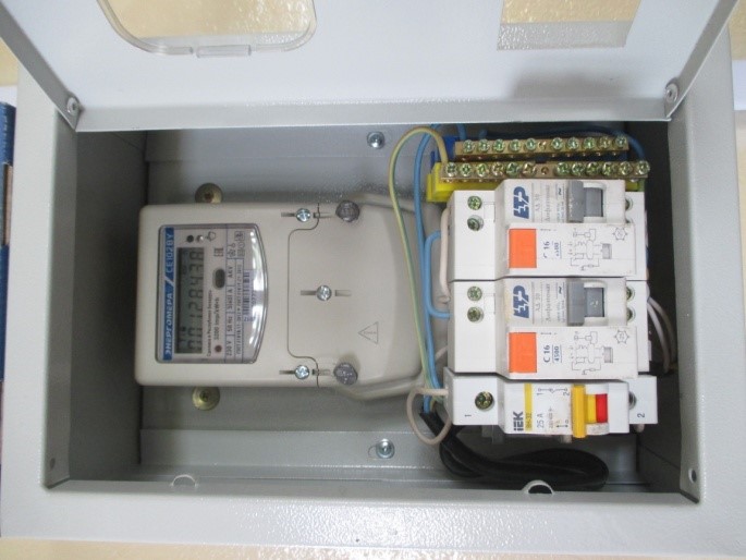 - Щиток учетно-распределительный ЩРУ для учета и распределения электрической энергии, защиты силовых и осветительных сетей напряжением от перегрузок и токов короткого замыкания.. Навесной щиток с установленными: счетчиком электрической энергии однофазным СЕ102, Выключателем нагрузки на 25А, диф.автоматами на 16А.